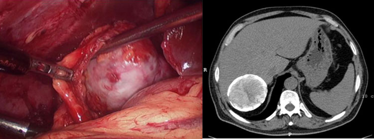The treatment for these cysts is either a marsupialisation or a cysto-pericystectomy by laparoscopy. Spillage of cyst contents can sometimes cause anaphylactic reaction and occasionally dissemination of hydatid disease. These patients also require long term medication with albendazole.